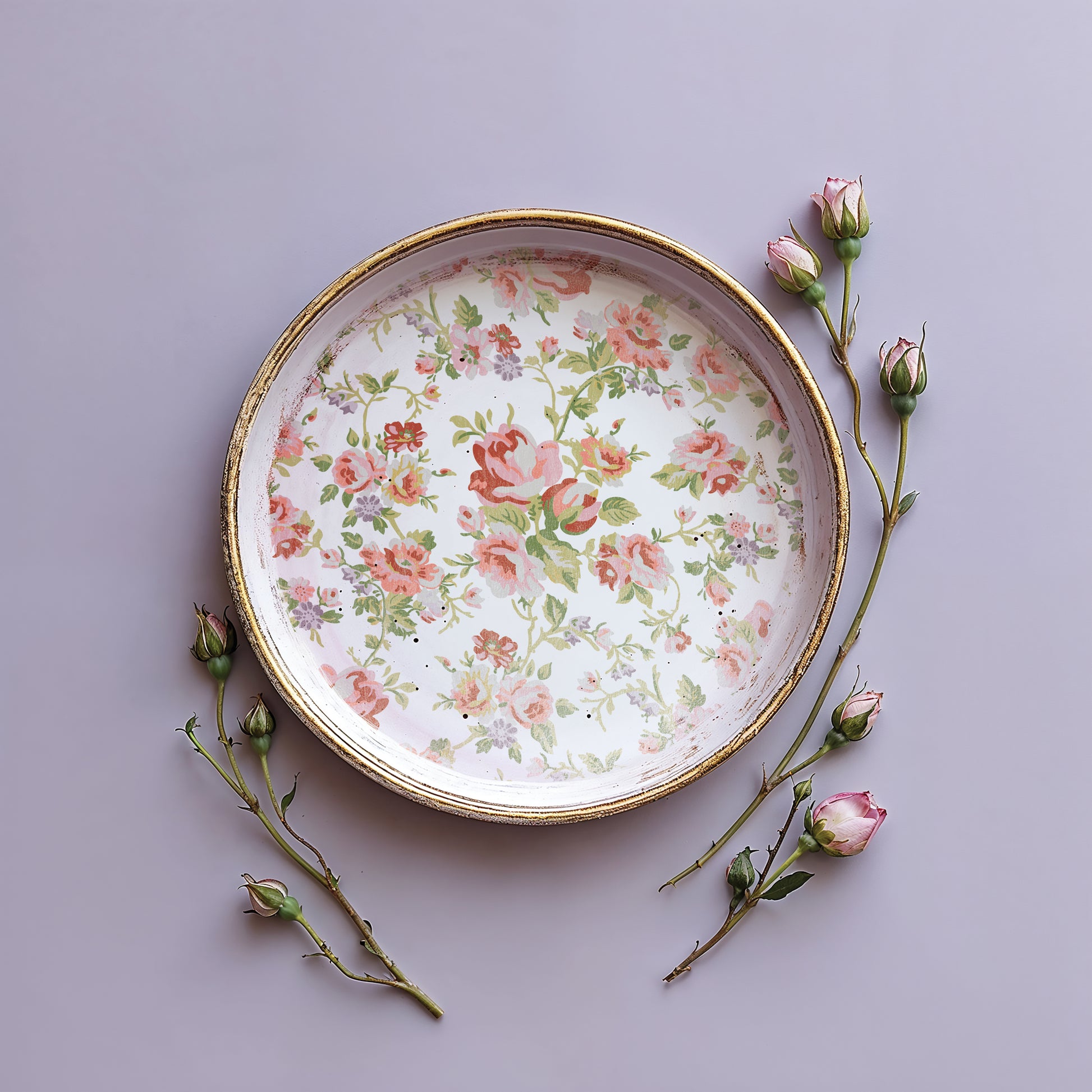 Inspired by the pages of a darling 1916 English wallpaper sample book, Ditsy Blooms is an absolute must-have in your artisan-making supplies. This paint inlay is a beautiful collection of traditional block print roses, bluebells, and entwined ribbons.