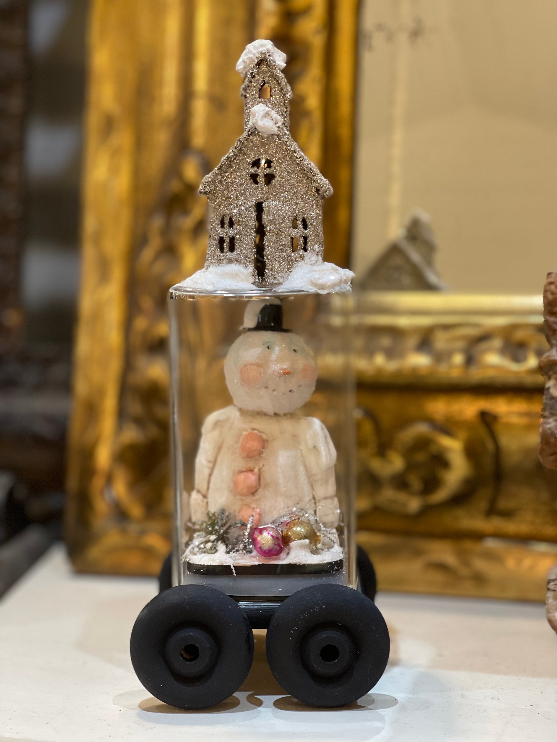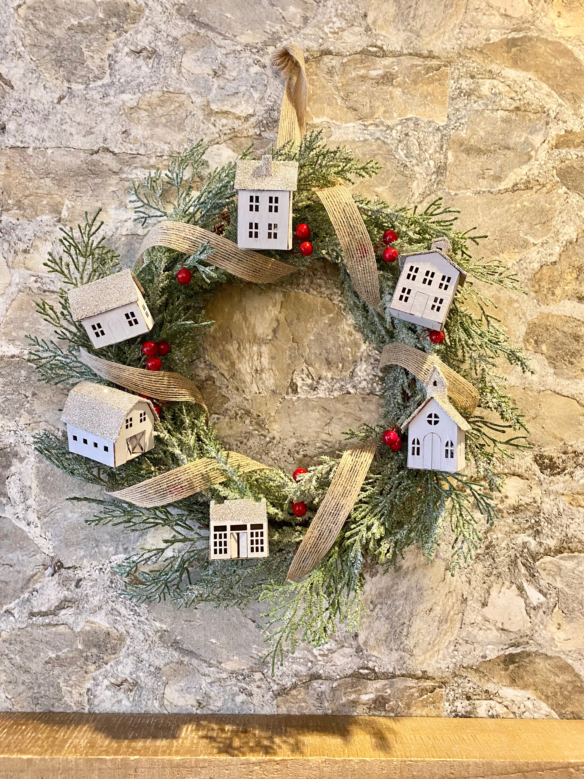 Putz house kit contains 6 laser cut buildings, Church, 2 Houses, Store, Barn and School, ranging from 2 1/4" - 3" tall. Made from sturdy chipboard, with easy fold glue tabs. Pieces are unpainted, and come flat. You assemble with hot glue, heavy craft glue or double sided 1/8" score tape, then embellish with paint, glitter etc. Each building has an opening at the bottom where string lights can be inserted. Use as ornaments, holiday scenes or add to wreaths!! This is not a finished product. Set of 6.